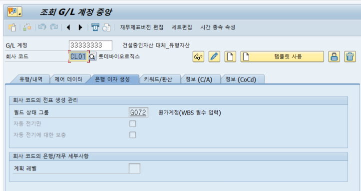 5. 전표 생성 시 2번의 상세 내용 조정으로 WBS를 필수로 입력해야 하는 G/L 계정이 됨