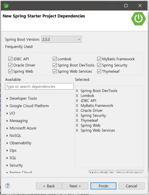 DB연결은 바로 하지 않을거기에 DB연결을 필수로하는 boot-starter를 주석처리하고 사용할지 안할지도 모르는 security관련 부분도 모두 주석처리 하였다. (security는 추후에 알아볼 예정)