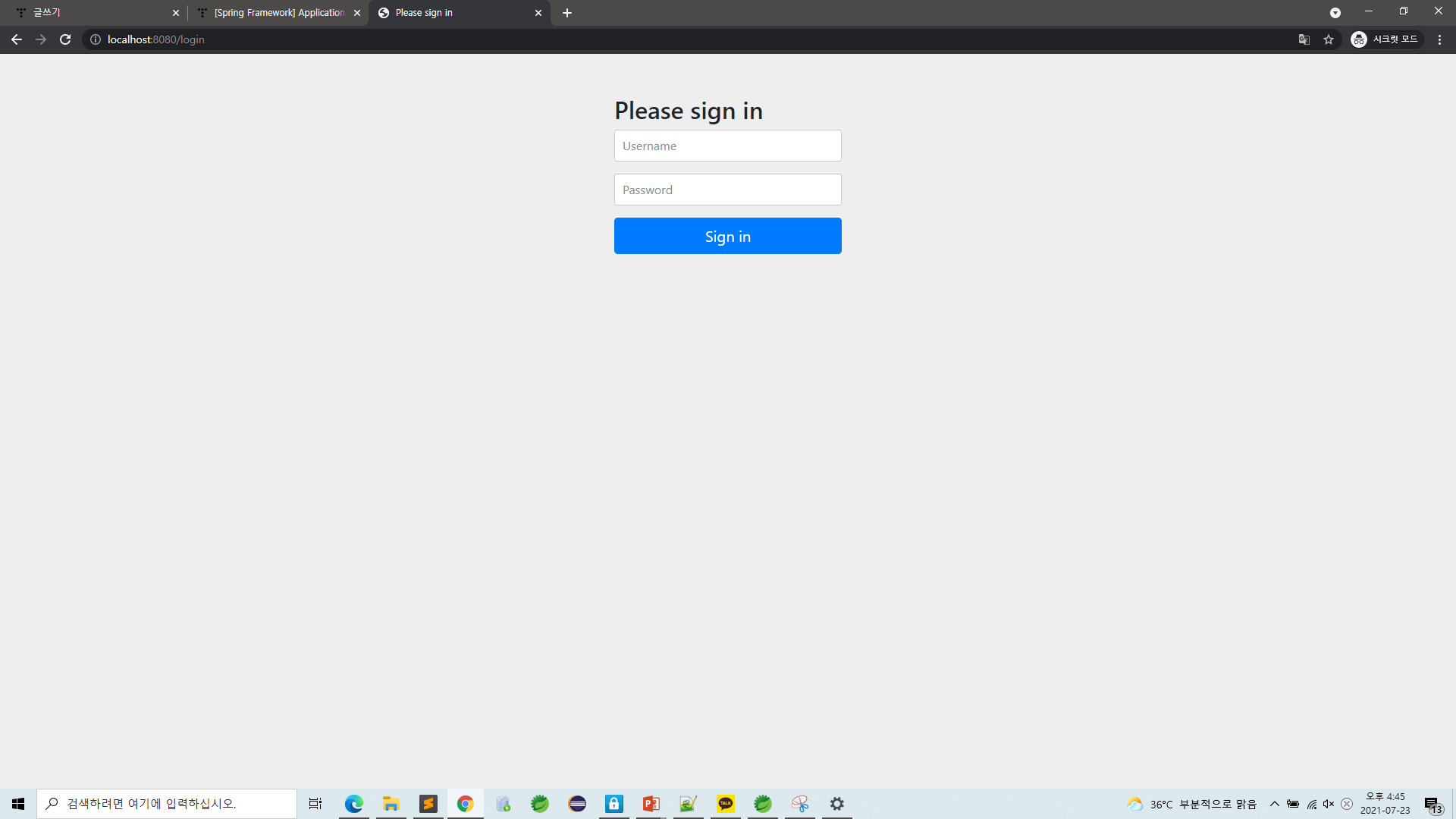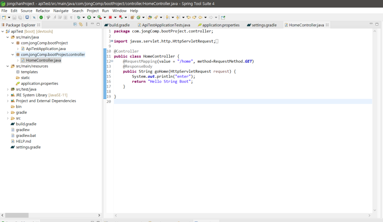 Spring Boot 1번 개시물에서 우리는 maven으로 프로젝트를 생성했었다. 그리고 오늘은 gradle로 프로젝트를 생성하였다. 결론적으로 너무 다른 이질감을 느끼지도 못하였고 잘 사용할것 같다. 그리고 dependencies에 jdbc를 주석처리하면 db연결 없이도 localhost 내부 톰켓서버가 에러 없이 잘 구동된다는 것을 알았고 springSecurity를 추가하면 인증을 통과하지 못하면 계속해서 login페이지가 호출된다는 것도 알게되었다.