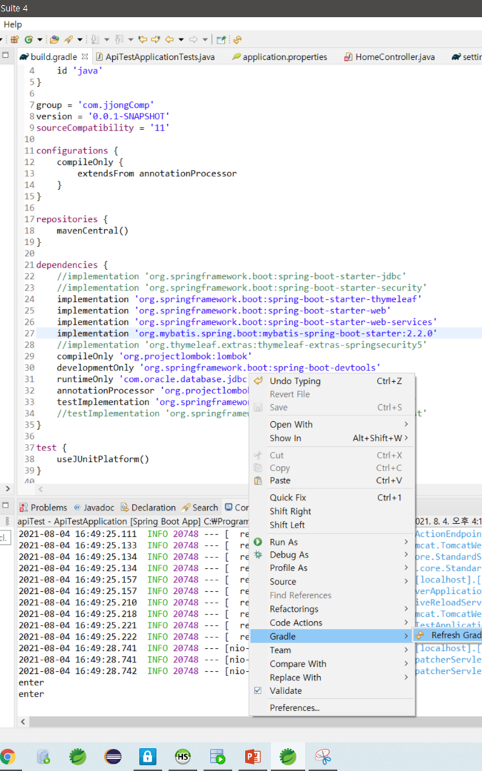 세팅 완료 후 새로고침을 통해 build를 다시하는데 maven과 확연하게 다른 빌드속도를 보여준다... 너무 좋다.