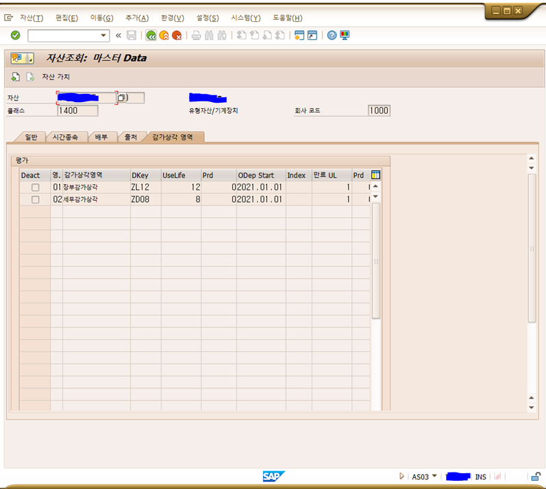 장부감가상각(감가상각진행중), 세부감가상각(비망자산됨)